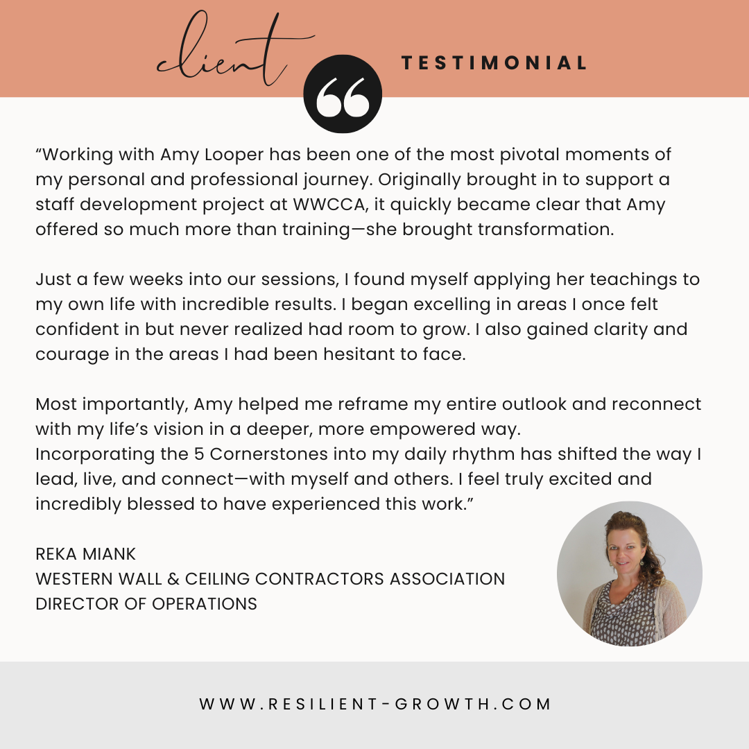 She is the creator of The Resilient Growth Method, a science-based framework that empowers women to shift out of stress-driven habits and into sustainable success—both at work and at home. With certifications from the Arizona Trauma Institute and extensive executive coaching experience, Amy equips leaders with practical strategies to stay regulated, focused, and fulfilled in high-demand environments.